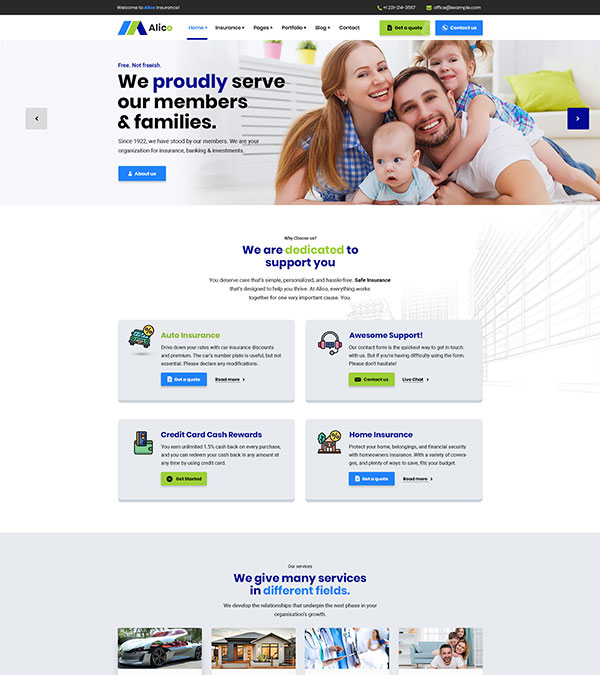 Alico is a Insurance business WP Theme. This theme is suitable for all corporate, insurance, banking etc business. Will be updated continuously in every month.